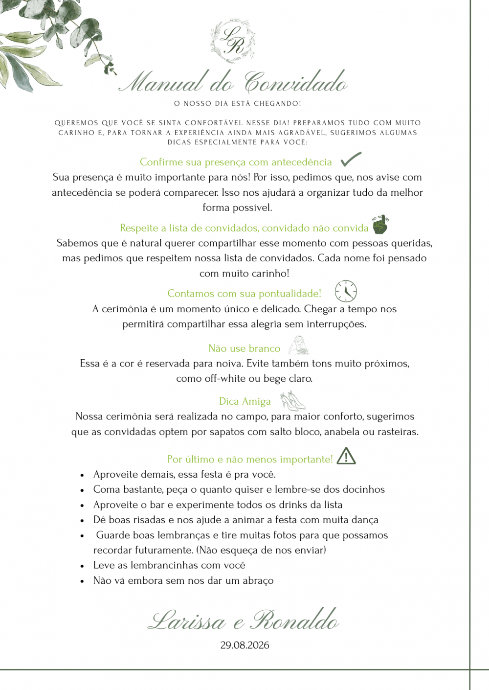 Vocês foram escolhidos com o coração — e não poderíamos imaginar esse dia sem cada um de vocês ao nosso lado.